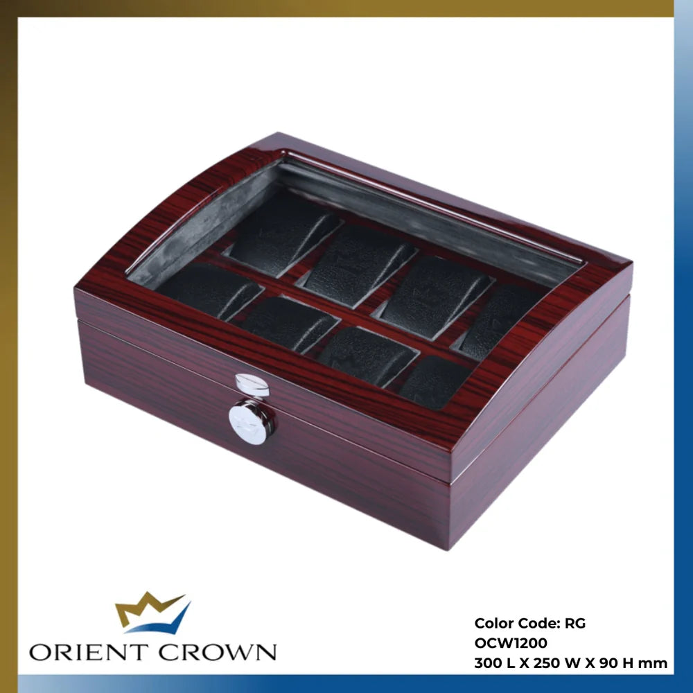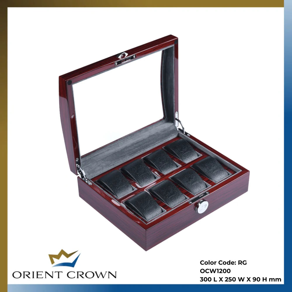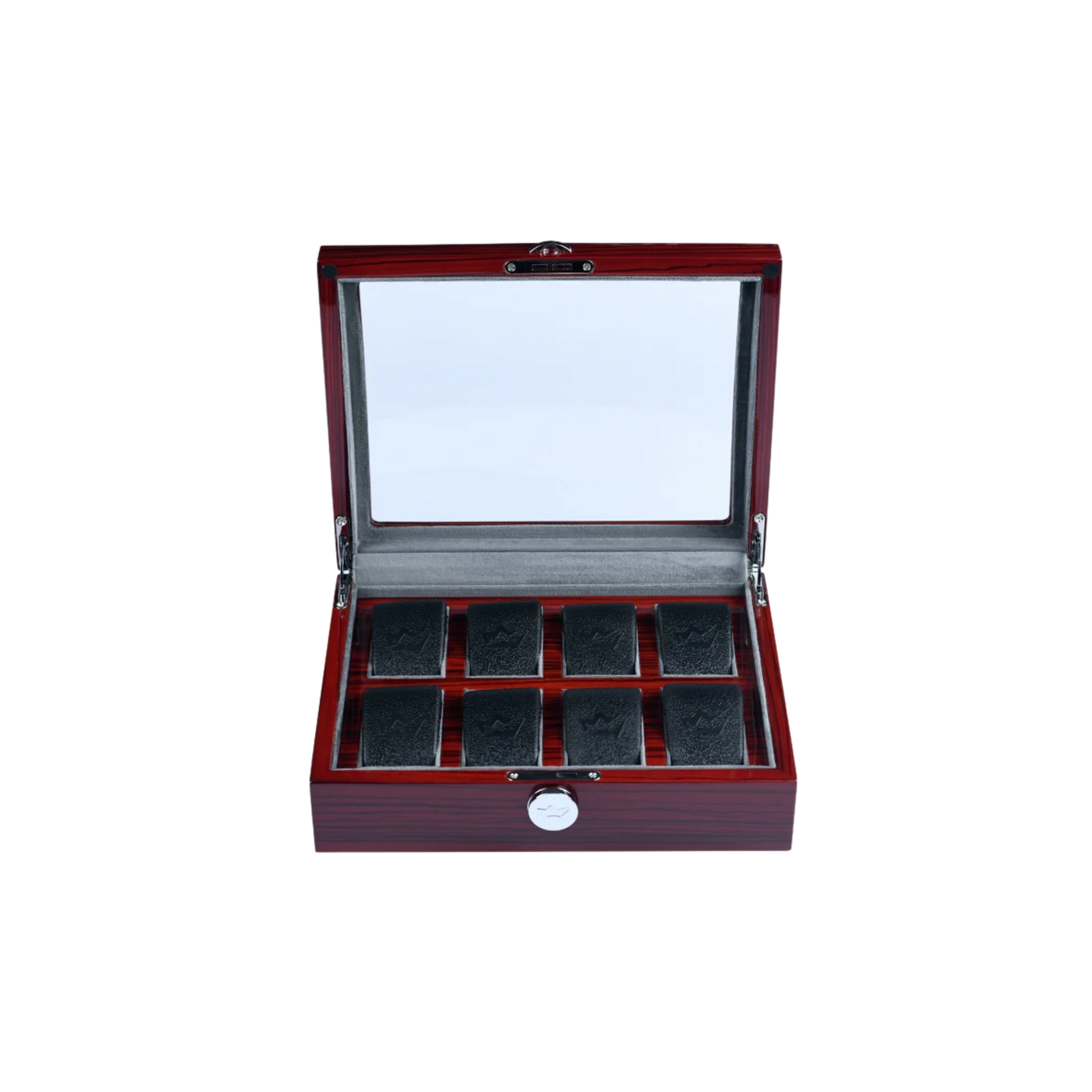 A fusion of glossy wood elegance and velvet softness opens up to cradle your esteemed watches, inviting admiration and reverence in every glance.