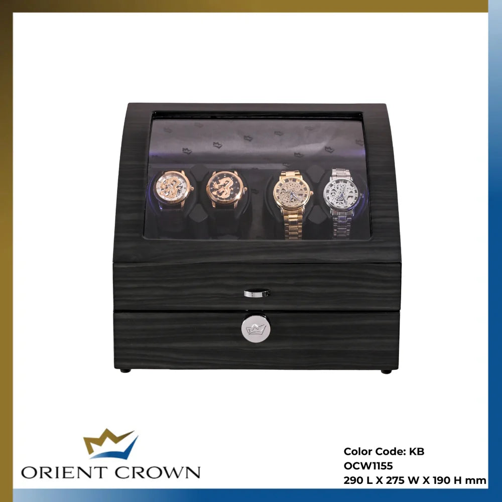 Unveil the zenith of watch care with our 4 Watch Winder + 5 Storage Slots - a masterpiece blending unrivaled design and silent performance for the sophisticated collector.