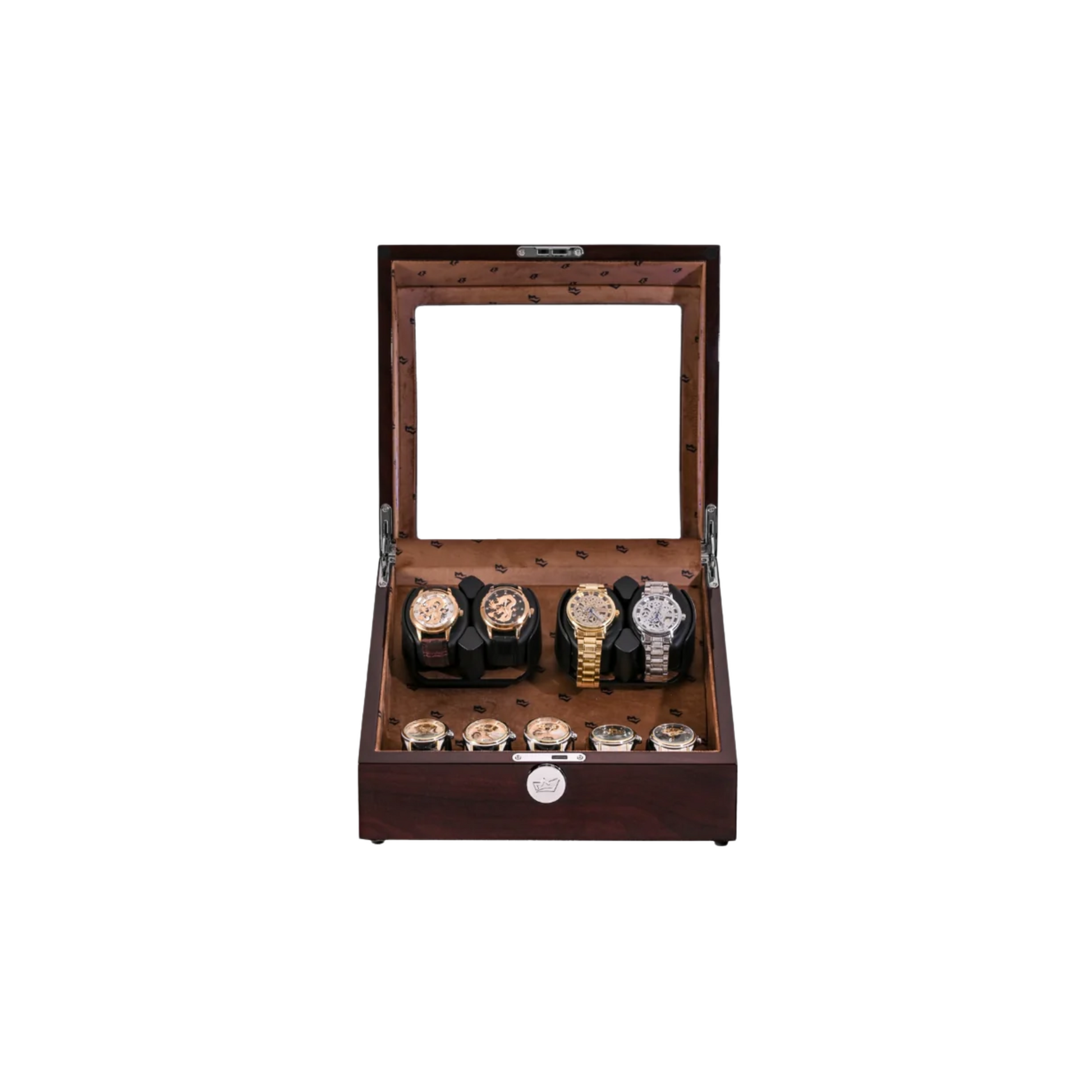 Unveil the zenith of watch care with our 4 Watch Winder + 5 Storage Slots - a masterpiece blending unrivaled design and silent performance for the sophisticated collector.