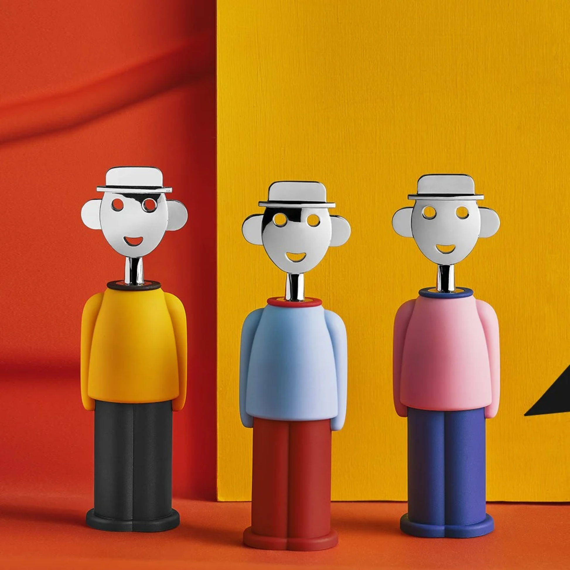 A design self-portrait created by Alessandro Mendini, the Alessandro M. corkscrew returns dressed in a new chromatic range invented by its author. Dedicated to the collectors of Alessandro Mendini’s work and of his ‘quick-change' corkscrews, and for those wishing to uncork a fine wine with a tool combining function and emotion.