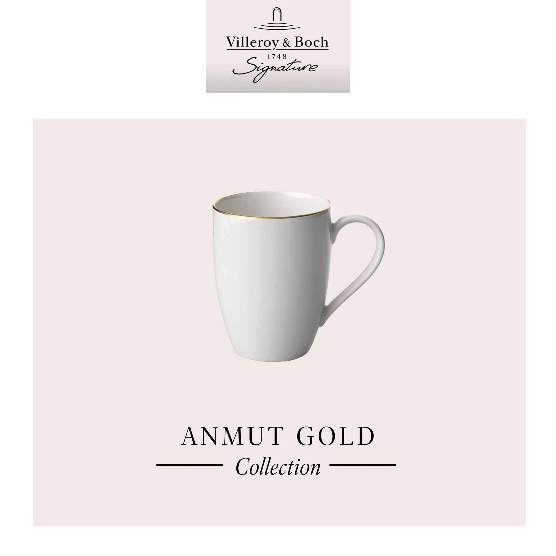The Anmut Gold collection features hand-painted decorative lines made with fine gold on elegant white, high-quality porcelain. It is precisely this interplay between Premium Bone Porcelain and real gold that gives the collection a sense of style and class. Perfect for anyone who loves both quality and elegance. This mug is as versatile as you want it to be and will delight you for a long time with its brilliant pattern thanks to "Inglaze Gold" technology. Make your table more beautiful with the timeless charm of fine gold.