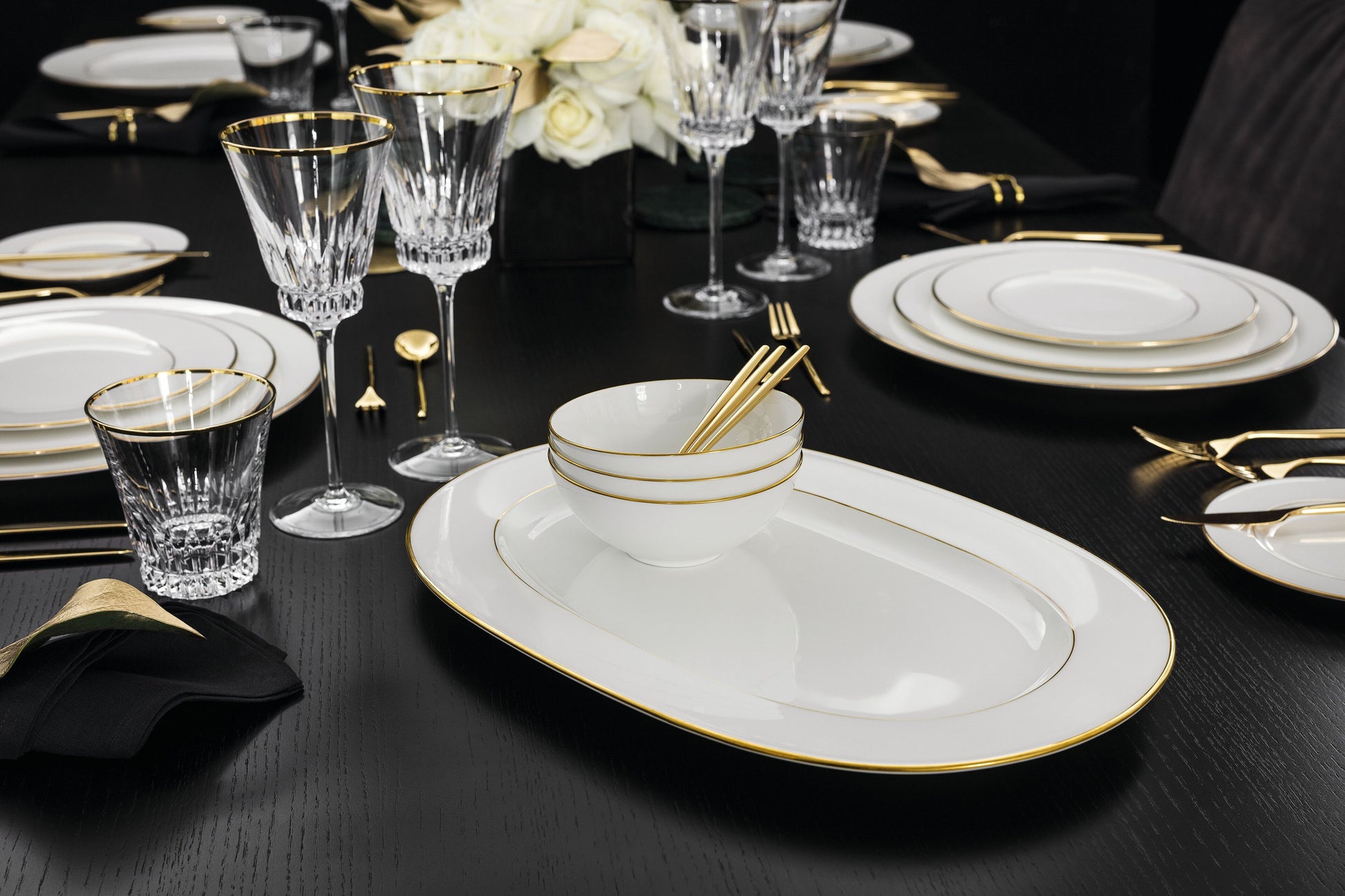 The interplay of top quality and pure elegance makes this collection a timeless classic that can be showcased in style. From festive galas to fine dining – Anmut Gold dazzles at sophisticated occasions and provides the ultimate background for culinary creations. The comprehensive range paves the way for unlimited possibilities.