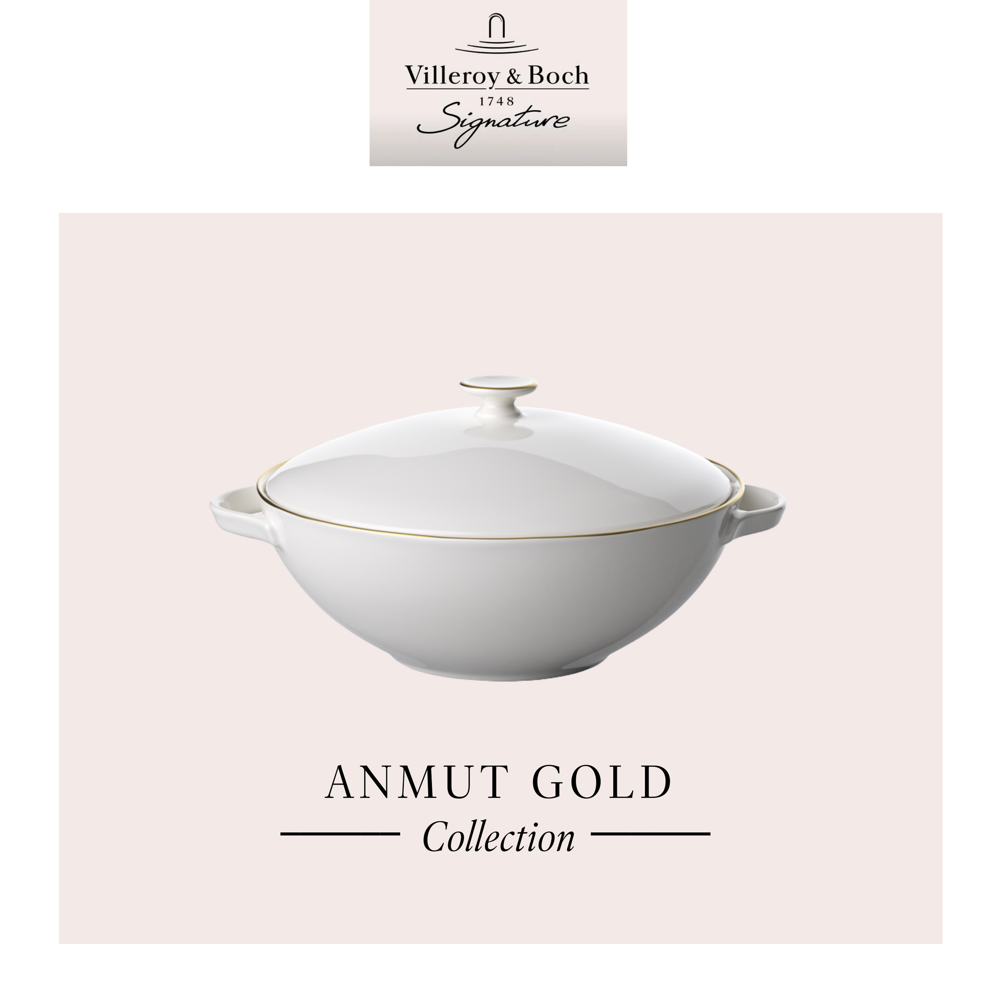 The Anmut Gold collection features hand-painted decorative lines made with fine gold on elegant white, high-quality porcelain. It is precisely this interplay between Premium Bone Porcelain and real gold that gives the collection a sense of style and class. Perfect for anyone who loves both quality and elegance. Nothing beats a delicious soup that tastes even better when served in our tureen – the pattern will remain brilliant for a long time thanks to "Inglaze Gold" technology. Make your table more beautiful with the timeless charm of fine gold.