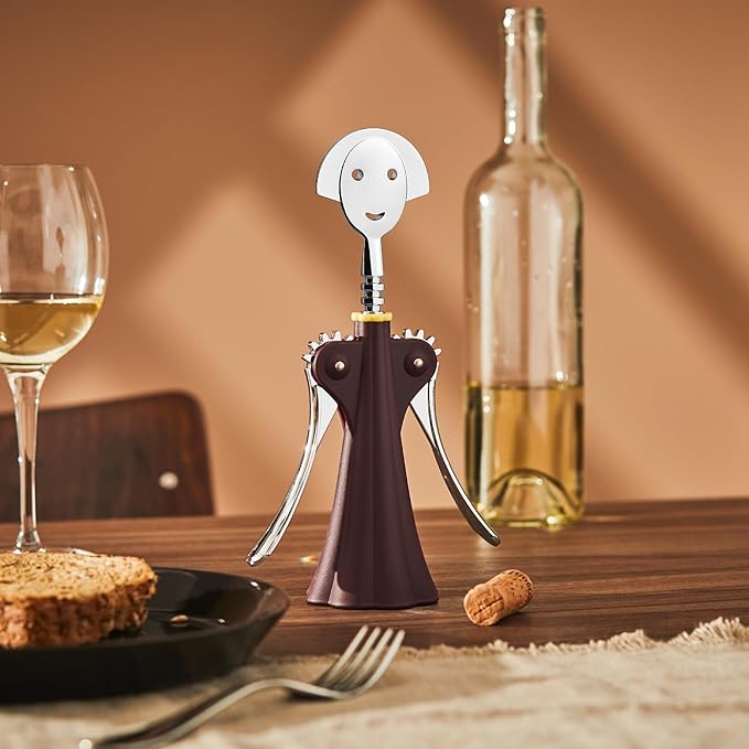 A best seller since it was first produced in 1994, the Anna G. corkscrew is a tongue-in-cheek homage to a real woman. Her smiling face has become something of a cult figure over the years, giving birth (so to speak) to a rich family of objects for the table and kitchen in a wide range of materials.