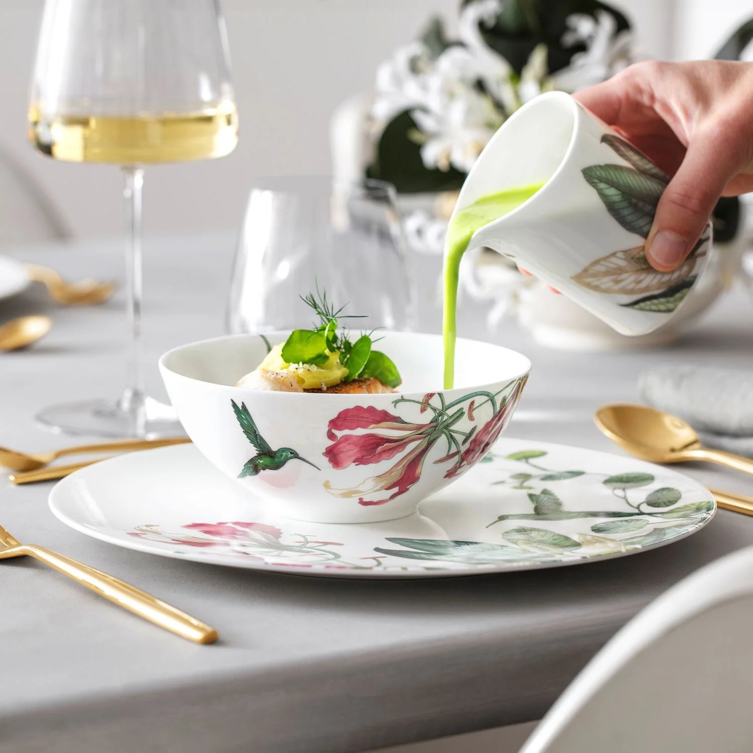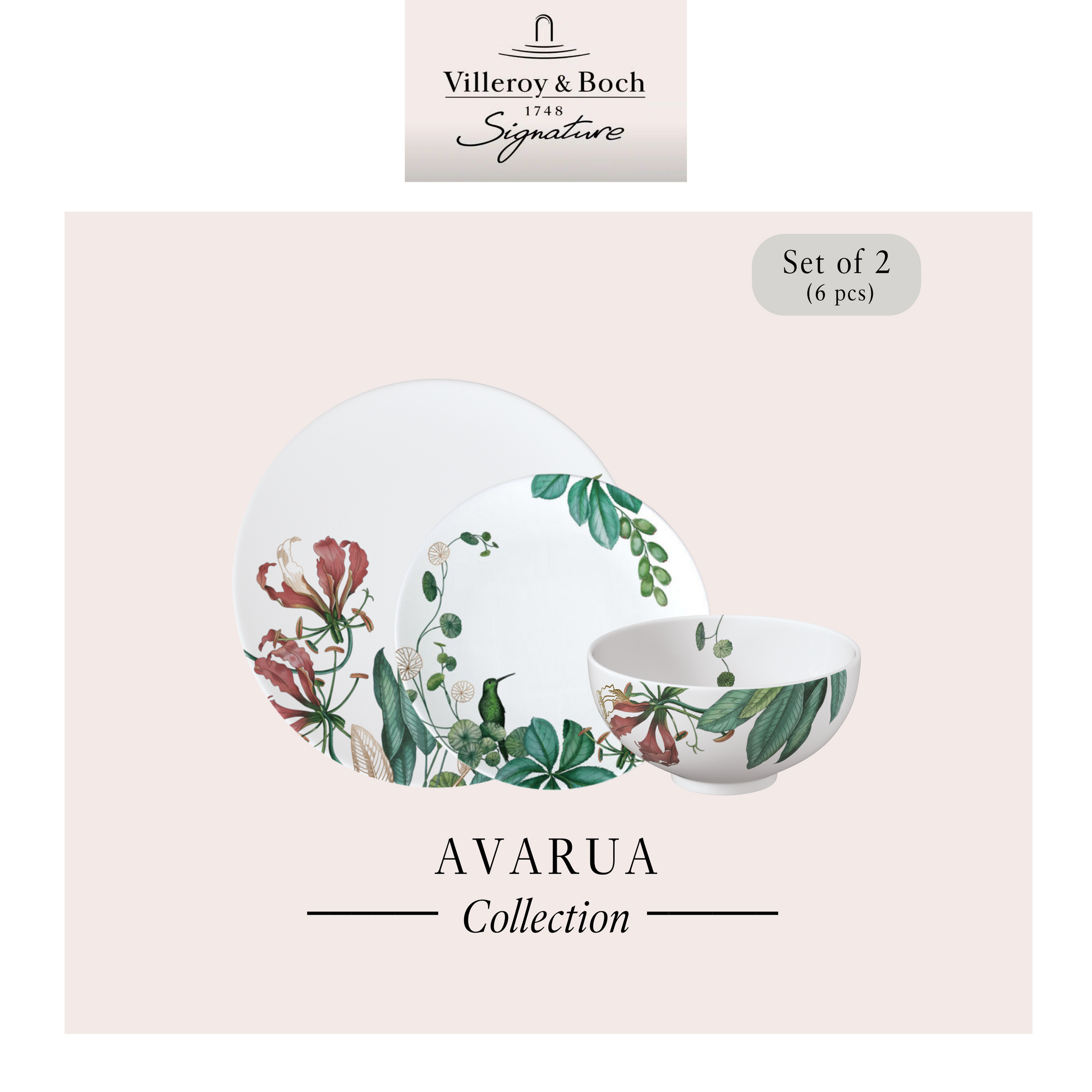 Each piece embodies a sensual journey that enhances your dinnerware with the finest design and a touch of tropical elegance. Be inspired by Avarua and experience how this extraordinary dinnerware made of premium bone porcelain blends harmoniously into your living space.
