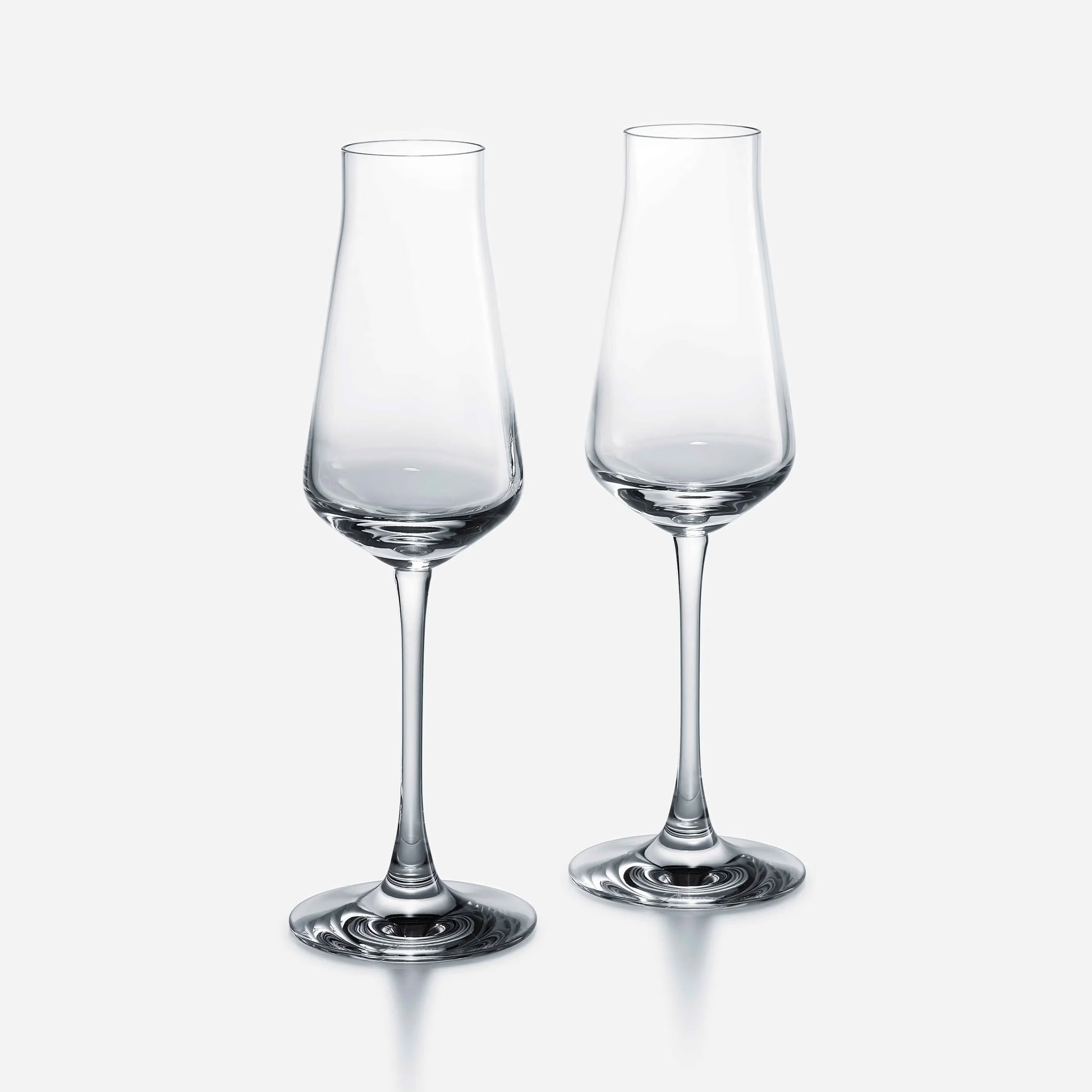 The Château Baccarat champagne flute has a sharp aesthetic and contemporary design that expertly melds form and function. Inspired by the taste-vin silhouette that sommeliers use, the tall bowl is wide and has a V-cut base, which allows the bubbles to rise seamlessly. The tapered lip enables the flavor to fill the vessel with a concentration of sparkling aromatic richness. The Château Baccarat champagne flute takes into account the changes in the wine market and has, accordingly, crafted a stylish and cunning shape. Perfectly suited to the discerning vintage connoisseur, this sophisticated stemware is worthy of any celebratory occasion or festive soirée. The Château Baccarat wine glasses, tumbler and decanter fill out the set with their equally exquisite form.