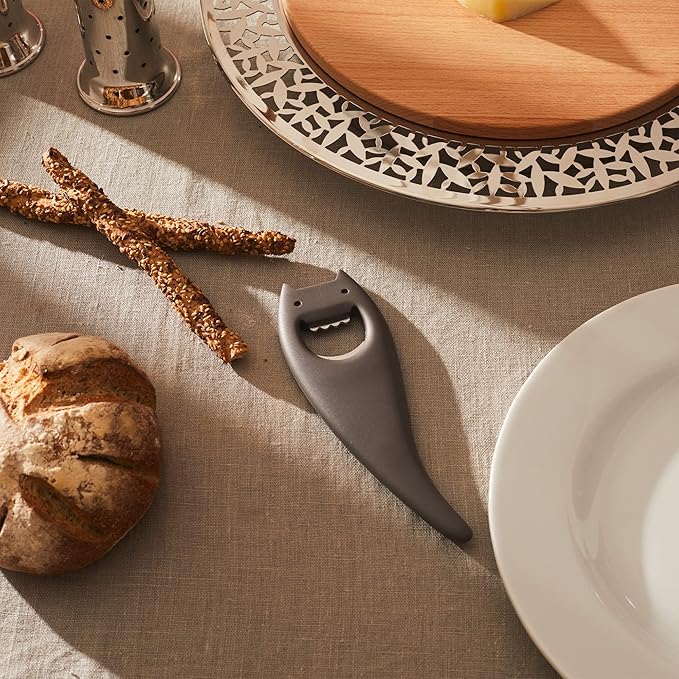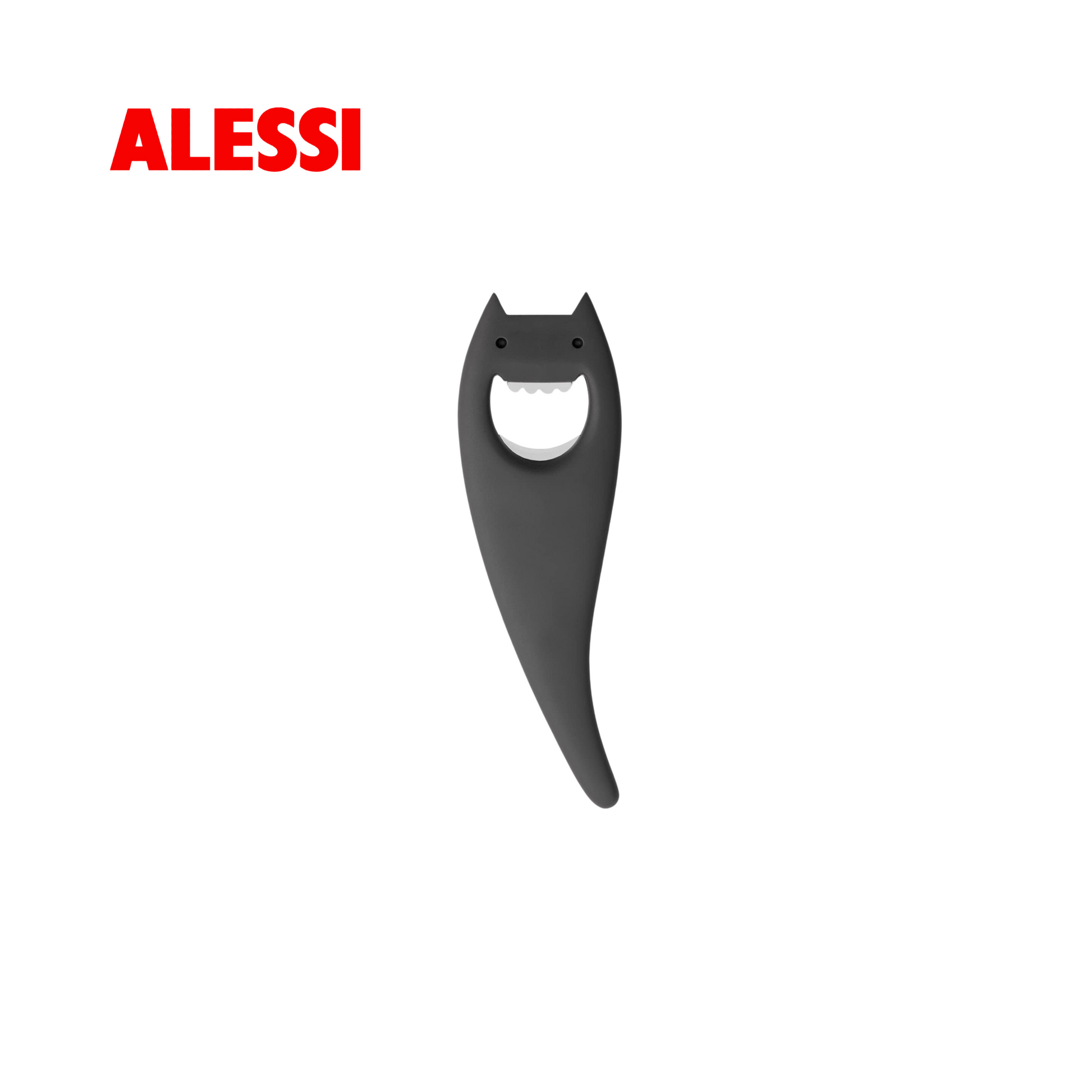 Bottle opener in thermoplastic resin, blue. Width (cm): 5.50 Length (cm): 18.00 Created as part of the F.F.F. (Family Follows Fiction) metaproject, an operation in the early 1990s that aimed to explore the affective structure of shapes and objects, starting from the idea of reproducing the object creation process followed by children and primitive cultures. The "Diabolix" bottle opener was a great success, perhaps because it married the creative energies of Centro Studi Alessi with a traditional object from the Alessi catalogue.
