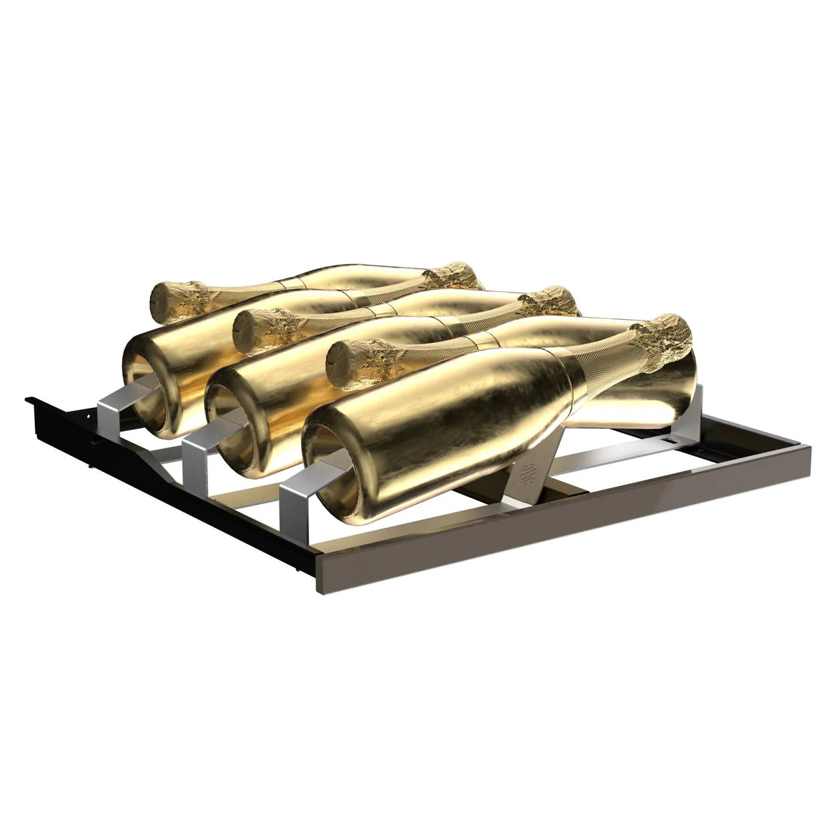 The bottle support fastened to the shelf is removable. It is guaranteed to be able to hold all of your champagne bottles, regardless of shape or size.