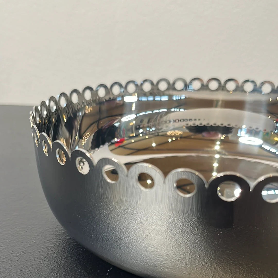Basket with perforated edge. 18/10 stainless steel sheet.