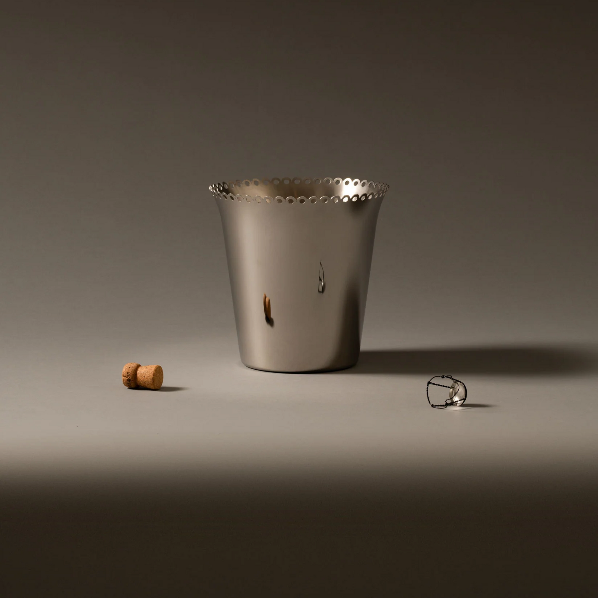 Ice bucket with perforated edge. 18/10 stainless steel sheet.
