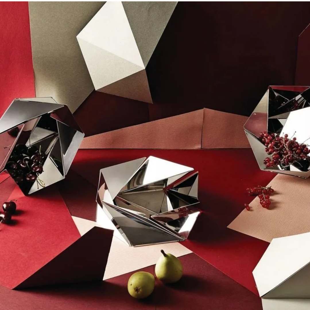 The Kaleidos Basket by Alessi showcases a striking geometric design crafted in high-quality 18/10 stainless steel. Both functional and decorative, this basket is perfect for holding fruits, bread, or small items while adding a modern architectural touch to your table or countertop. Its polished finish and durable construction reflect Alessi’s renowned craftsmanship and contemporary style.
