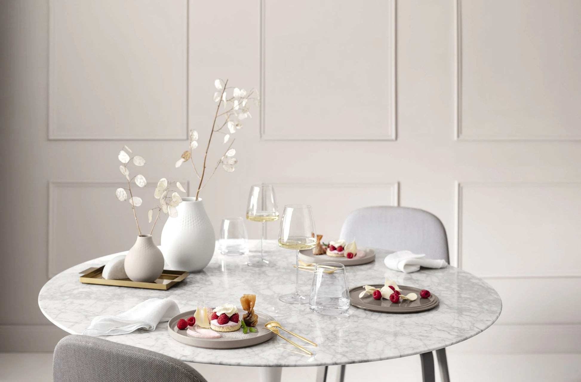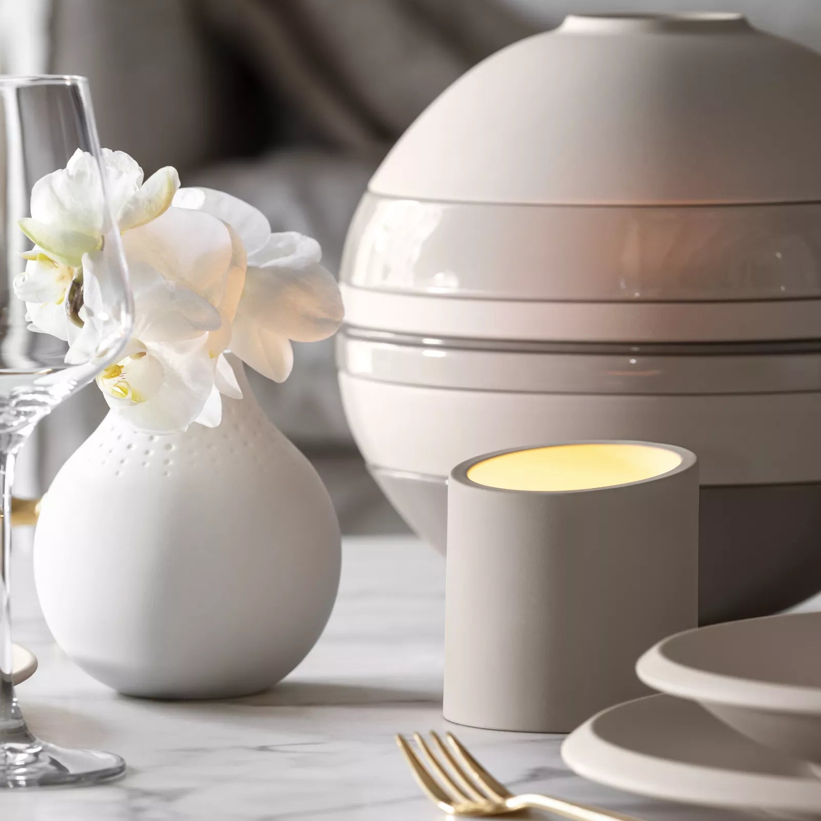 The Villeroy & Boch Manufacture Collier product range is made truly special by its attractive matte surface and strikingly structured appearance. The high-precision pieces of the Collier series, which includes vases, bowls and bowls of various sizes, were inspired by the beauty of real pearls. The rounded mini Perle vase from Manufacture Collier Blanc offers a great presentation opportunity for especially short-stemmed cut flowers, such as daffodils or lavender. Beautify your home with well-chosen decorative accessories!