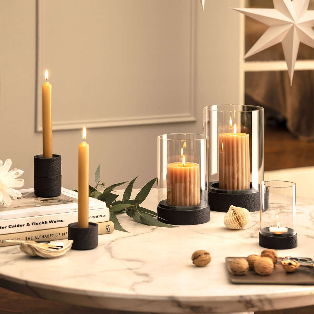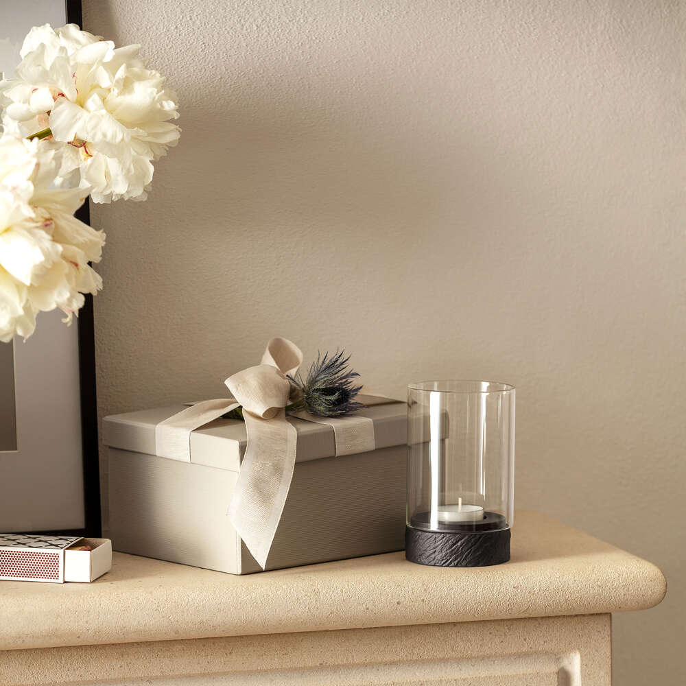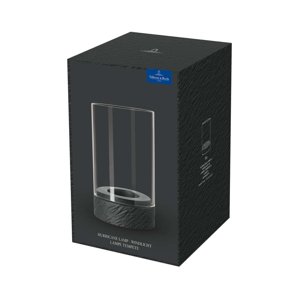The hurricane lamp in the Manufacture Rock collection will bathe your home in warm light and conveys the fascination with the elements of earth and fire that has permeated from ancient times to the present day. The puristic design and the contrast of the authentic slate look and delicate glass will make the hurricane lamp a very eye-catching feature on your beautifully presented table. Also makes a perfect gift! Enjoy exclusive design in your home – with the Manufacture Rock collection from Villeroy & Boch