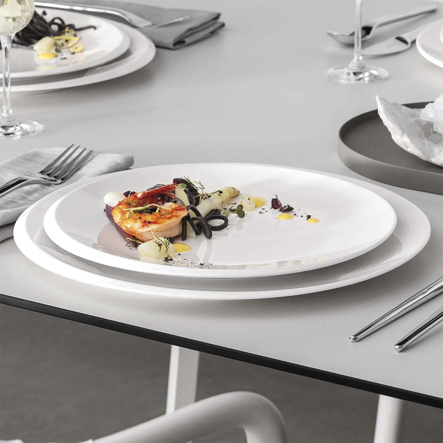 - Harmonious: The round gourmet plate can be ideally combined with many other tableware collections