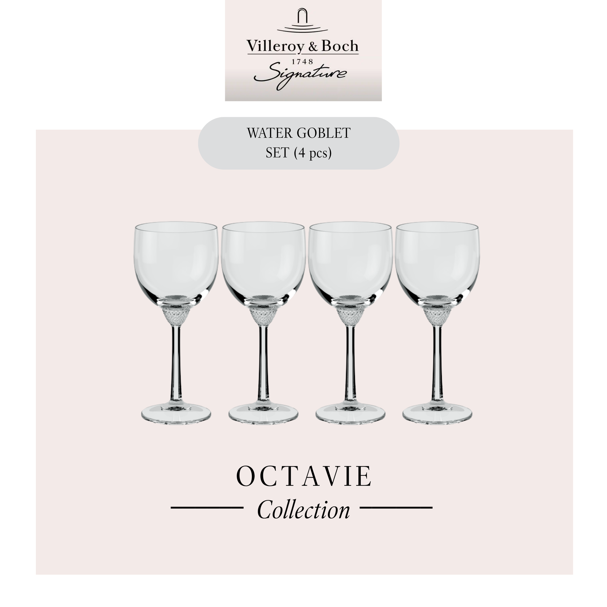 Octavie is a gourmet glass collection, created as a tribute to Octavie von Boch. The glasses with their opulent decorative elements provide an exclusive atmosphere at the table. The diamond cut pattern underneath the bowl refracts the light beautifully. Serve water or juice with charm in this high-quality, intricately designed glass. Add an elegant touch to your table at special occasions.