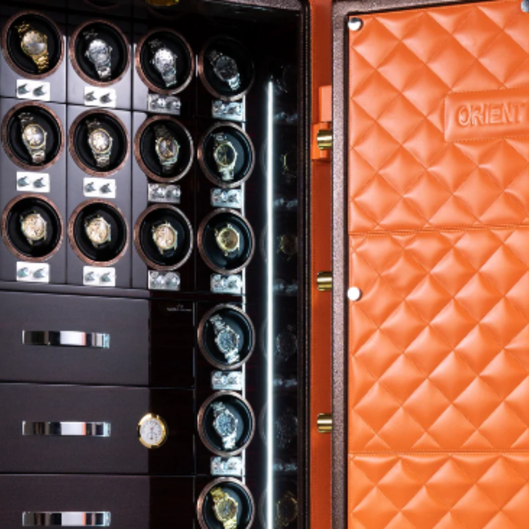 Winders: Anti-burglary safe box fully automatic 28 individual watch winders with Time Park technology (Can fit 60 winders without drawers)