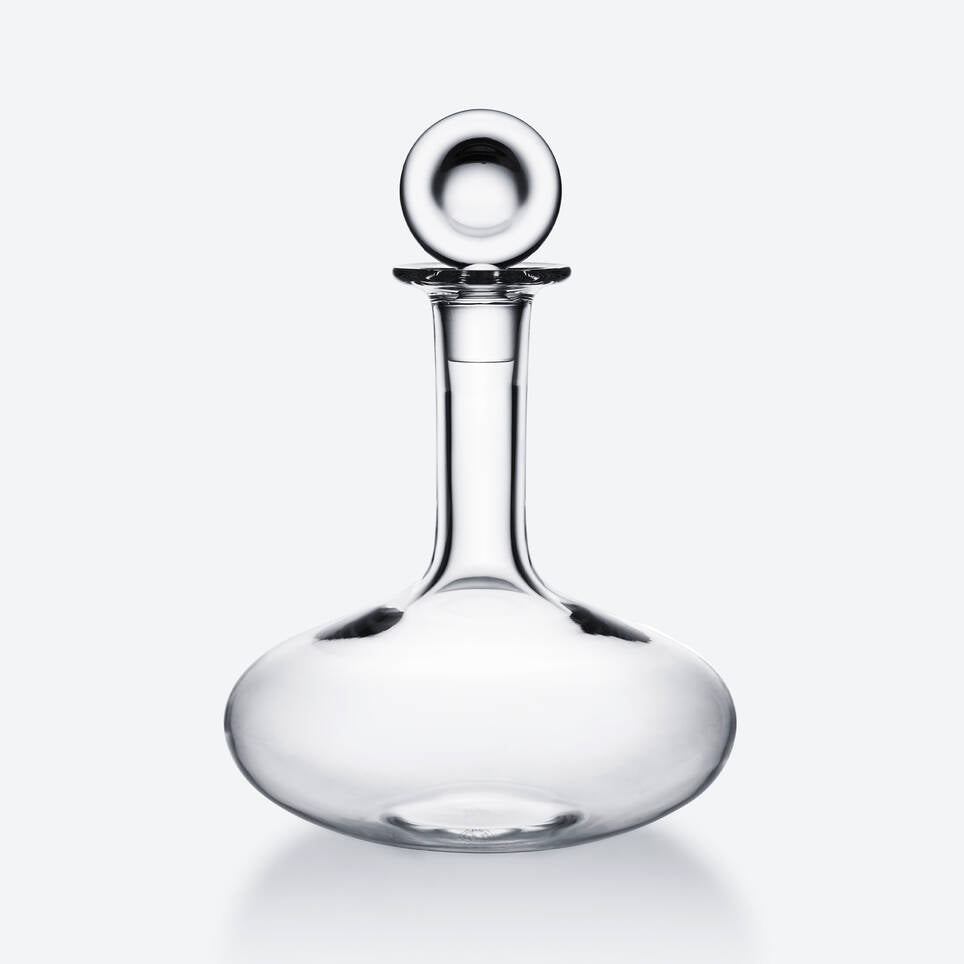 The « Oenologie » decanter in clear crystal is ideal for airing a young wine and releasing its flavors. The shape recalls the volumetric bottles seen in laboratories. The Oenologie decanter in clear Baccarat crystal is a magnificently crafted piece and an essential tool for wine tasting. Its functional form is lifted thanks to the fabulous Baccarat clear crystal and refined design. The elegant, fine neck gracefully merges into the decanter's curves. The silhouette is crowned with an elongated stopper in clear Baccarat crystal. The Oenologie collection also includes red wine glasses, a highball and a champagne flute, as well as a decanter designed for young wines.