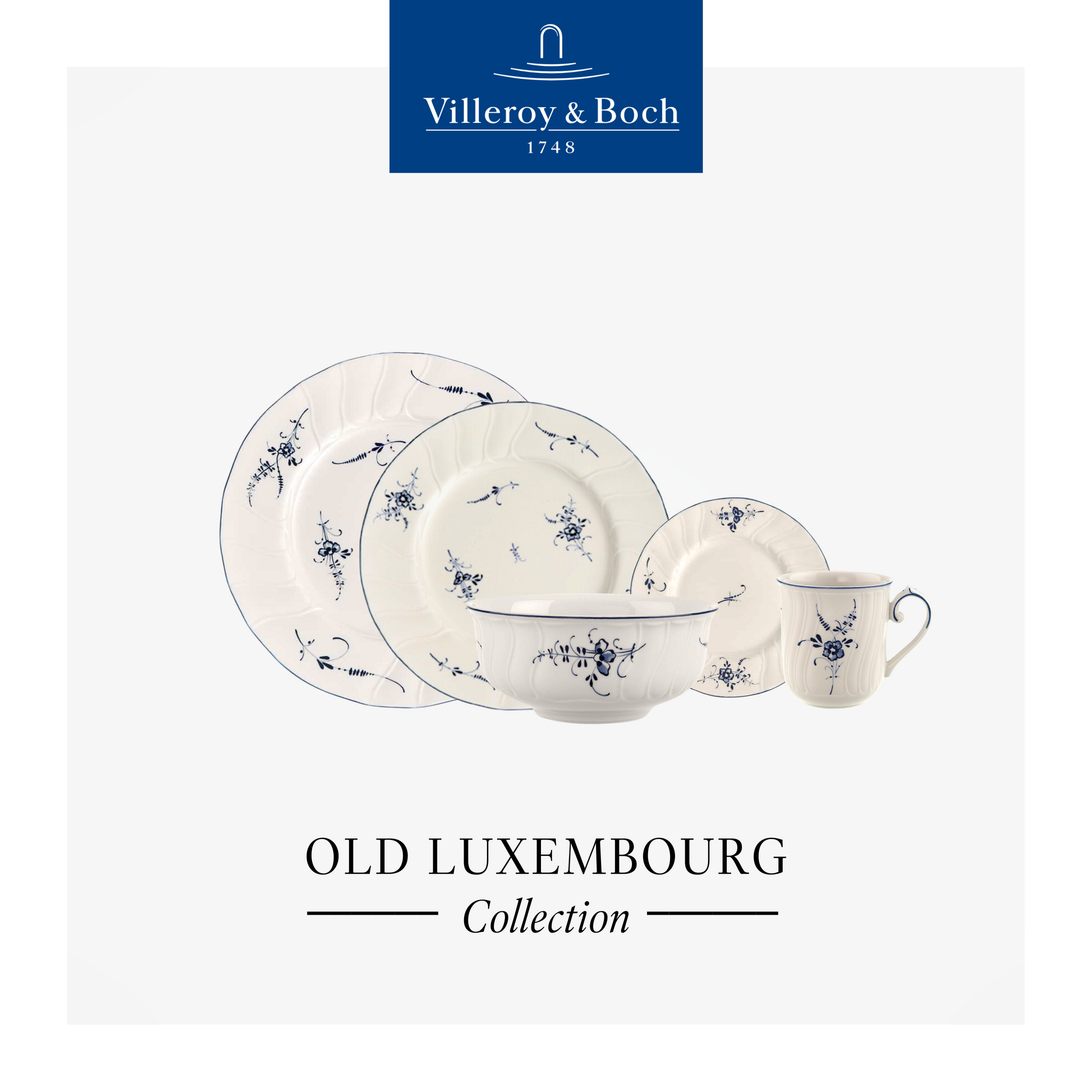 Outstanding design is characterized by one thing above all: timelessness. And timelessness also describes the tableware collection steeped in tradition, Old Luxembourg, featuring the French "brindille" pattern. For almost 250 years, the small blue blossoms on a branch have adorned this organically-designed porcelain service. This delicate rococo motif ranks among the most famous and popular tableware decors of all time.