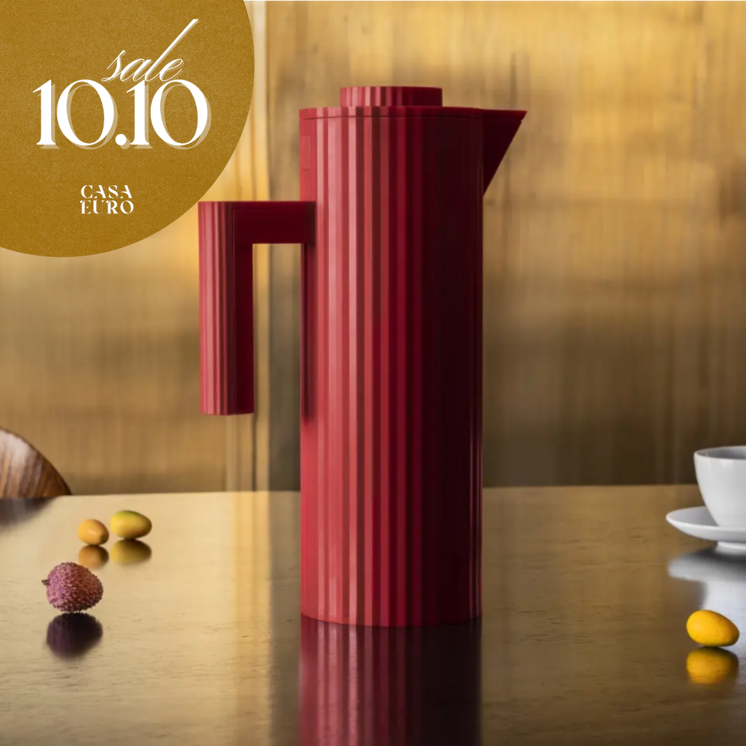 A refined drape dresses this thermo insulating jug designed by Michele De Lucchi: concise geometric lines and an attentive composition of the elements, synthesizing in an object technical requirements, high performances and the elegance of tailoring. Lightweight and easy to use, the Plissé thermo insulating jug does not hide how practical it is, integrating this with an iconic and timeless shape.