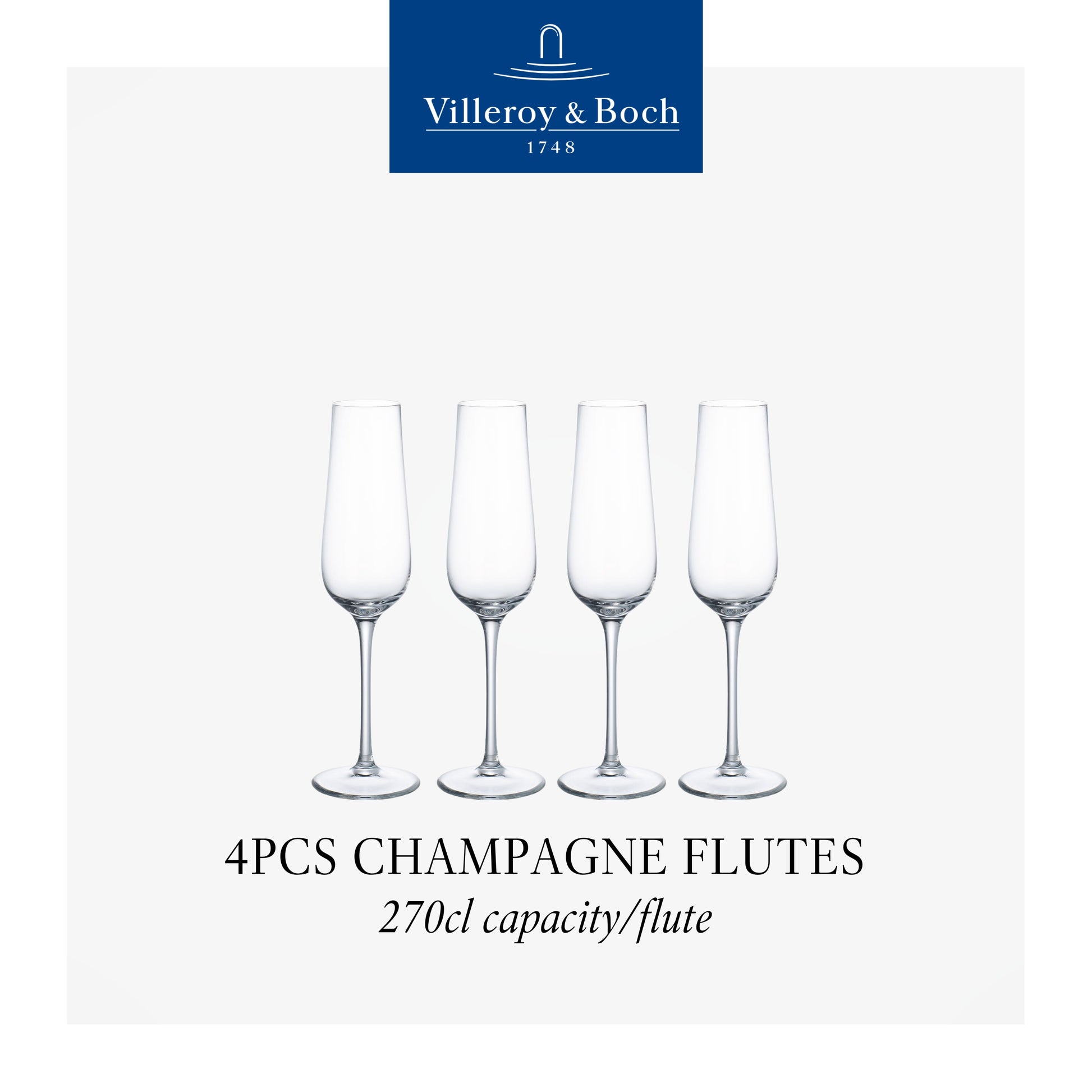 Villeroy & Boch's Purismo collection is characterized by its sophisticatedly simple yet functional forms and excellent use of materials. The series guarantees the quality enjoyment of various drinks. The Purismo family is complemented by thematic lines based on drink types, such as Purismo Specials, which covers a whole range of glasses for the home bar cabinet. The classic-style champagne glass from the product line is an indispensable accessory for special moments. The slightly narrowed mouth of the crystal glass slows down the evaporation of carbon dioxide, thus prolonging the drinking experience. Clink glasses in style!