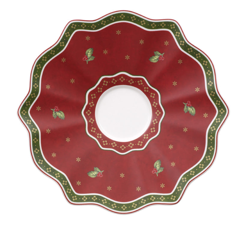 Toy's Delight Coffee/tea cup saucer is how you enjoy coffee and tea indulgence in a festive atmosphere. Create a nostalgic festive atmosphere in your home with the Christmassy Toy's Delight collection. The dinnerware is adorned with playful motifs in red, green and white and brings back childhood memories. To combine, collect and give. This saucer will round off your Christmas tableware set in style and has plenty of space for a sweet treat with coffee. Serve sweet Christmas treats with coffee or tea.