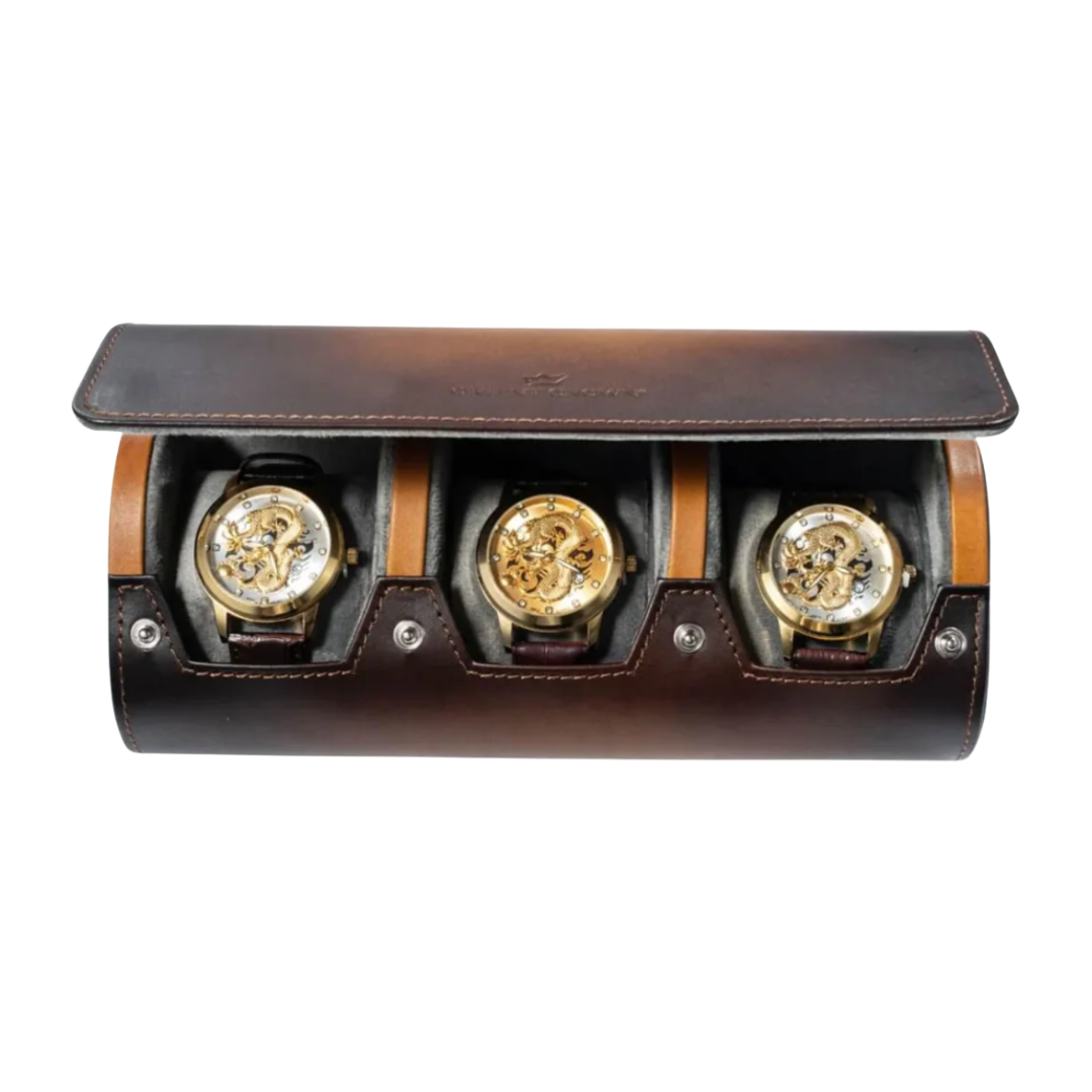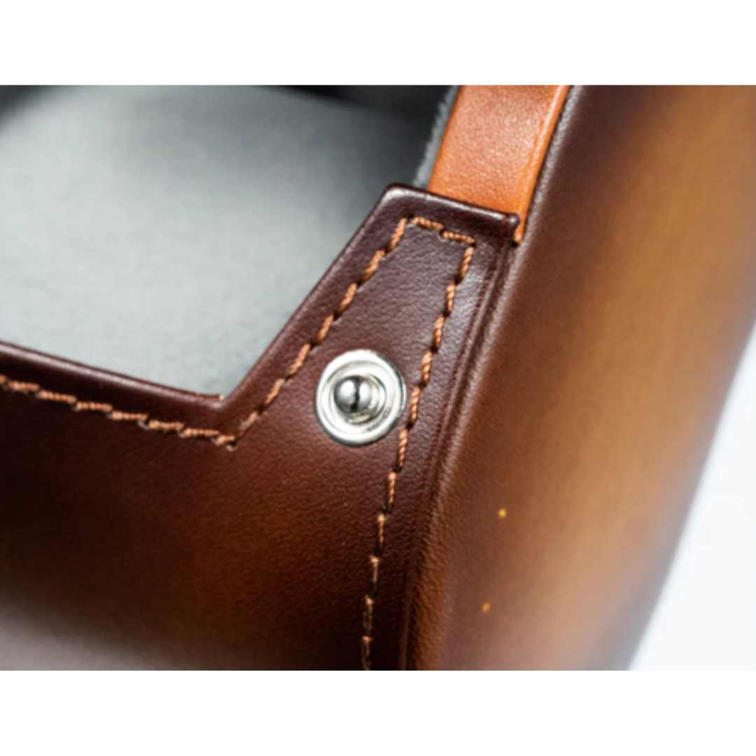 Materials: The Trio Pulse is an embodiment of refined protection, with its handcrafted top grain leather exterior ensuring resilience and class. Inside, a soft velvet lining cushions your watch, making the case a sanctuary of protection.