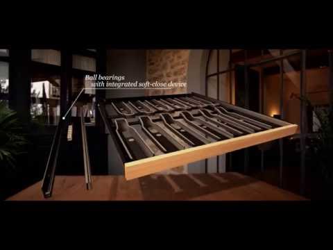 It comes with 14 sliding shelves with Main du Sommelier supports, giving the unit a maximum capacity of 182 Bordeaux bottles.