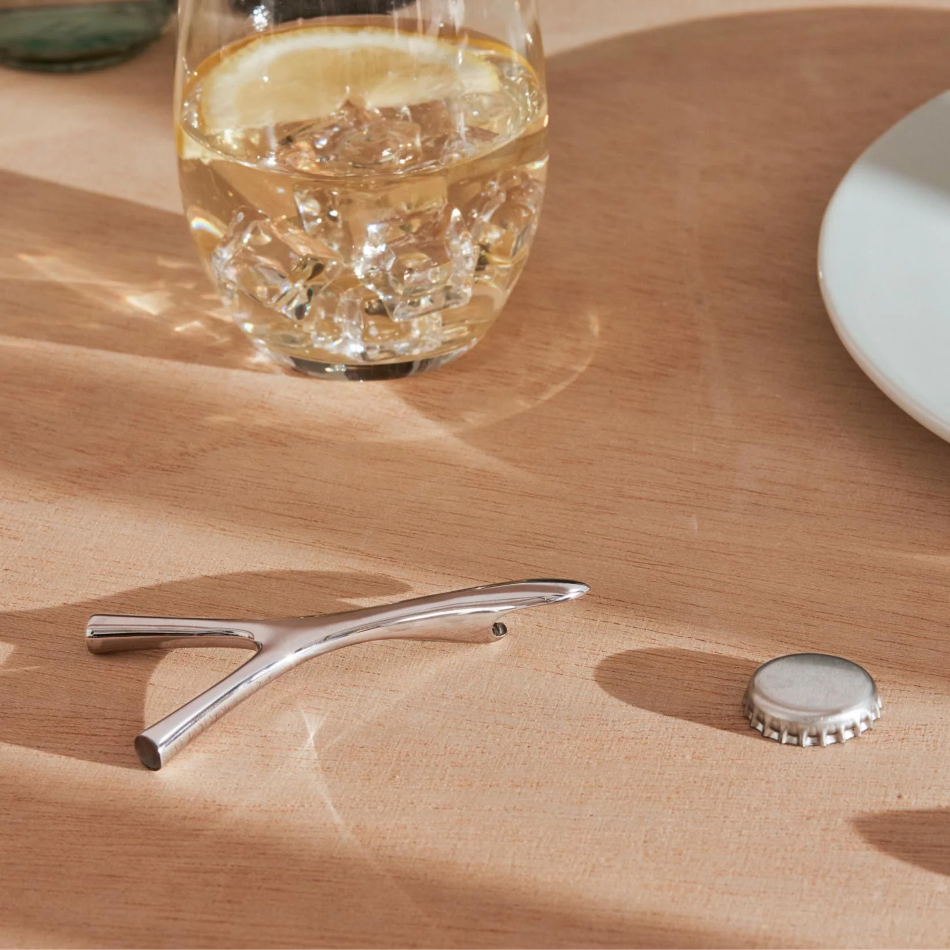 The Virgula Divina bottle opener recalls the enigmatic Y-shaped rod, the dowser's divination tool in his search for hidden treasures, in both name and form. A perfect drawing transformed into a practical bottle opener.